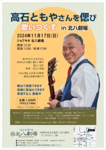 音楽イベント 高石ともやさんを偲び歌いつくす in北八劇場・11月17日(日)OPEN 12:30 START 9:00