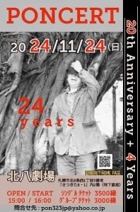音楽イベント PONCERT<20thAnniversary+4Years>・11月24日(日)OPEN 15:00 START 16:00