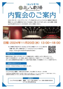 ジョブキタ北八劇場の内覧会を開催いたします。劇場内をどなたでも自由にご覧いただけます。